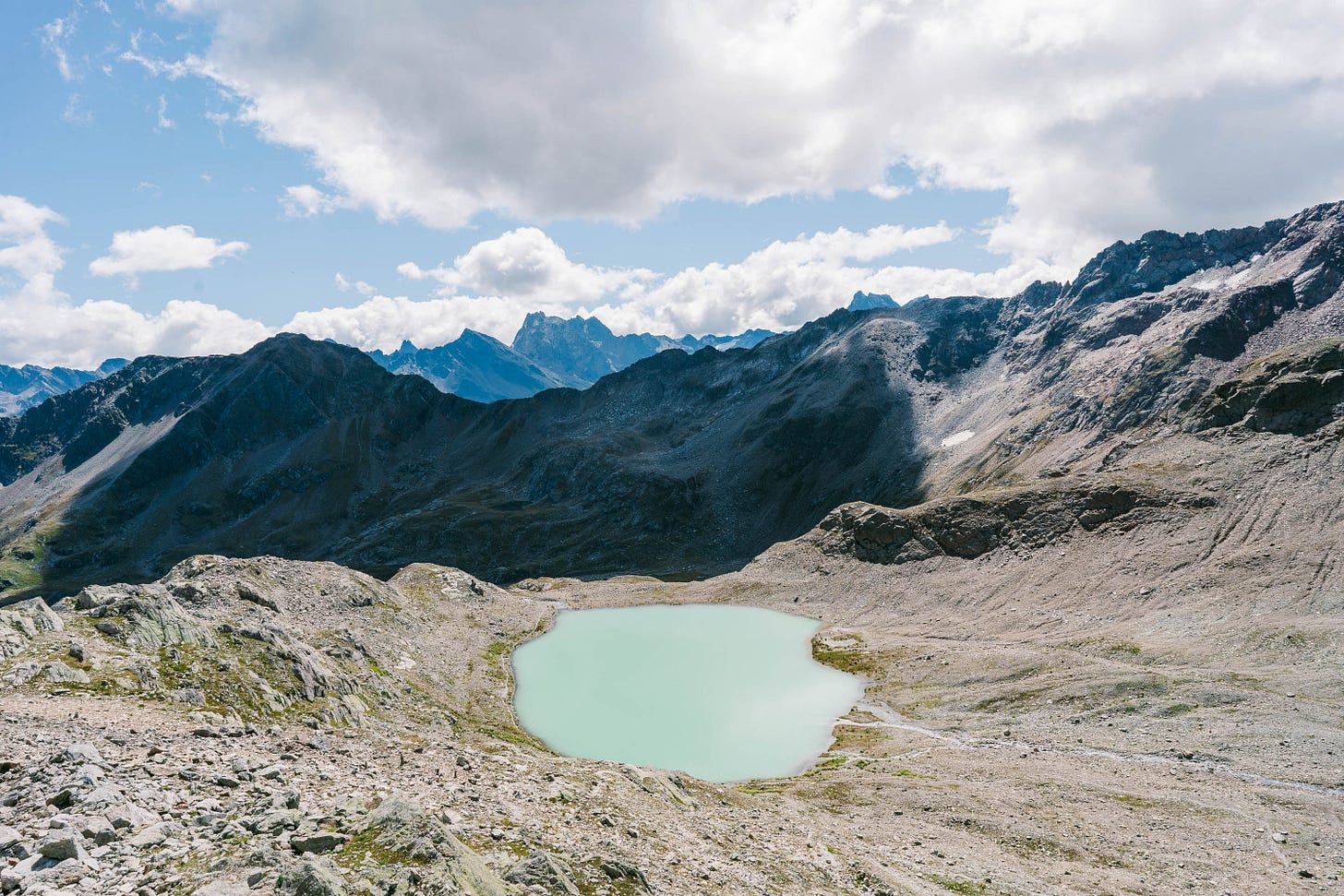 Descend from the pass alongside the stunning aquamarine alpine lakes, passing through a picturesque valley before the next climb. From there, it's a relatively short ascent over another saddle. Once you reach the top, you'll be rewarded with spectacular views of Patteriorol before embarking on a long descent to Konstanzerhütte. This is another great spot to relax, refuel, and gather your energy before continuing on the well-traveled trail back down to St. Anton.