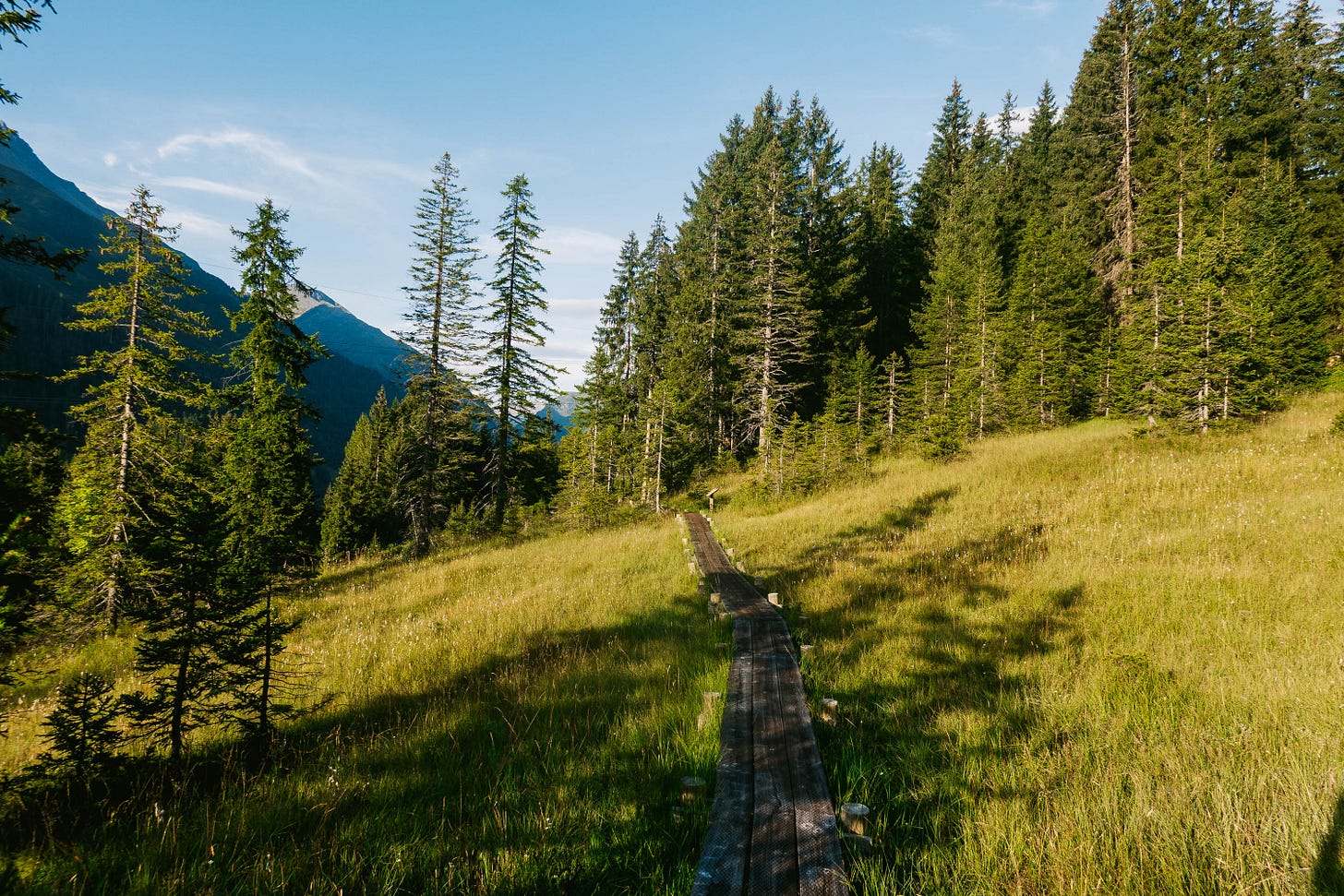 From Redlbahn, follow the path to the and join up with the Rossana trail that follows the river. Eventually you will connect with the Verwallweg, a graded path the continues all the way to Verwalsee. The lake is a stunning color, and it's a great place to relax and have lunch.
