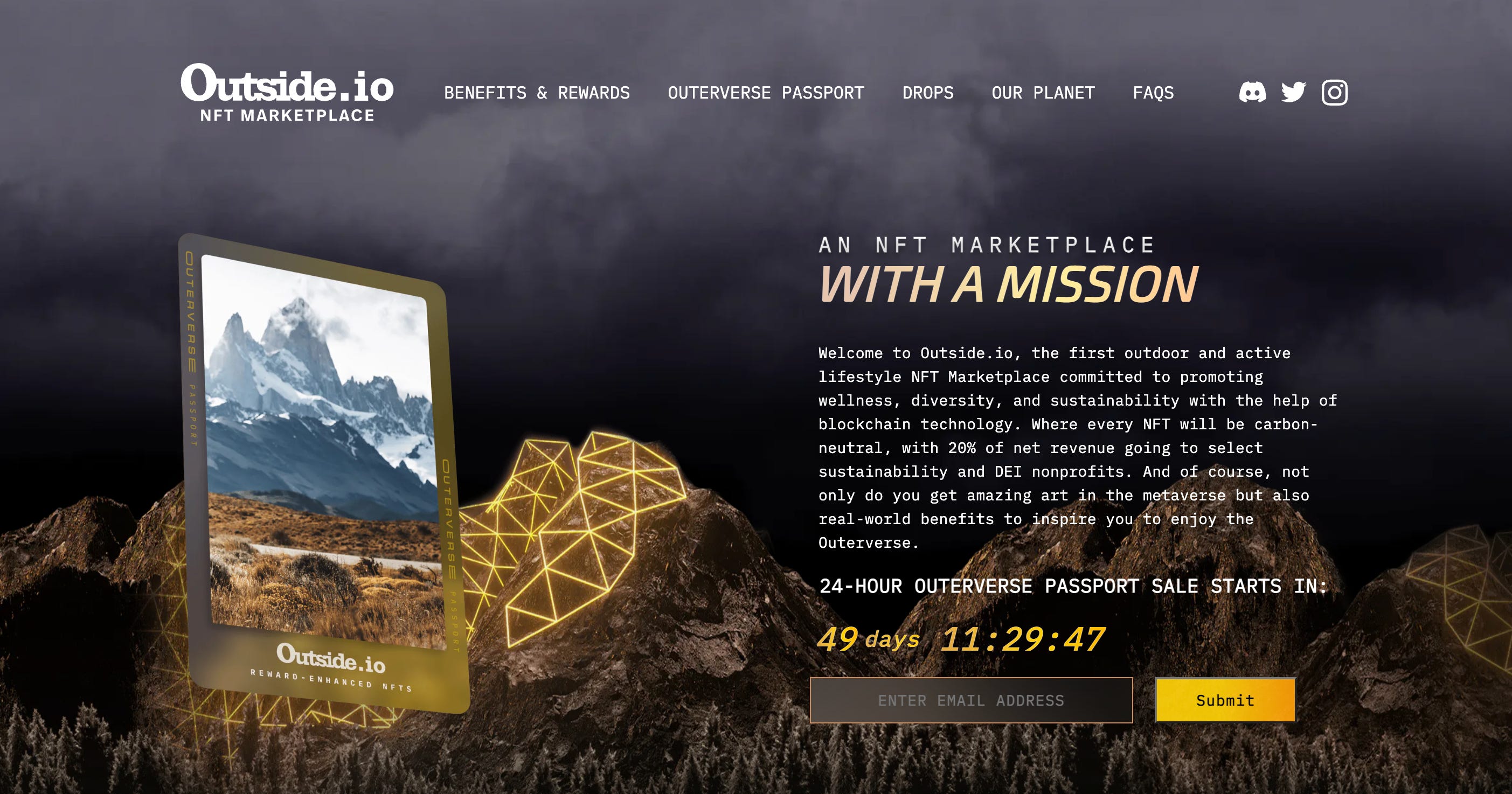 “Welcome to Outside.io, the first outdoor and active lifestyle NFT Marketplace committed to promoting wellness, diversity, and sustainability with the help of blockchain technology.”