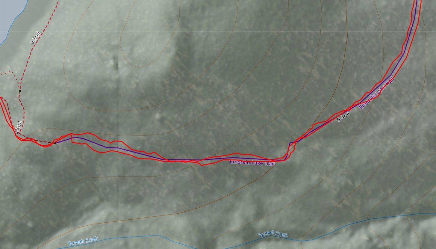 There are a million edge cases. Sometimes you actually do go off the trail – do you want that correctly tracked, or "smoothed" back onto a trail? How long or how many GPS points should be “off” the trail before it isn’t smoothed away? Did you cut a switchback? Did you walk around a trail obstruction? Did you have a section of bad signal coverage that created a huge significant outlier or did you go off the trail to take a shit? There are a lot of funny edge cases that people get really annoyed about and assume companies should "just fix", but are actually quite hard to identify consistently as true errors. This also accounts for many of the discrepancies between distance/elevation/etc using the same GPX track on different platforms, as each company may choose to address those edge cases in different ways.