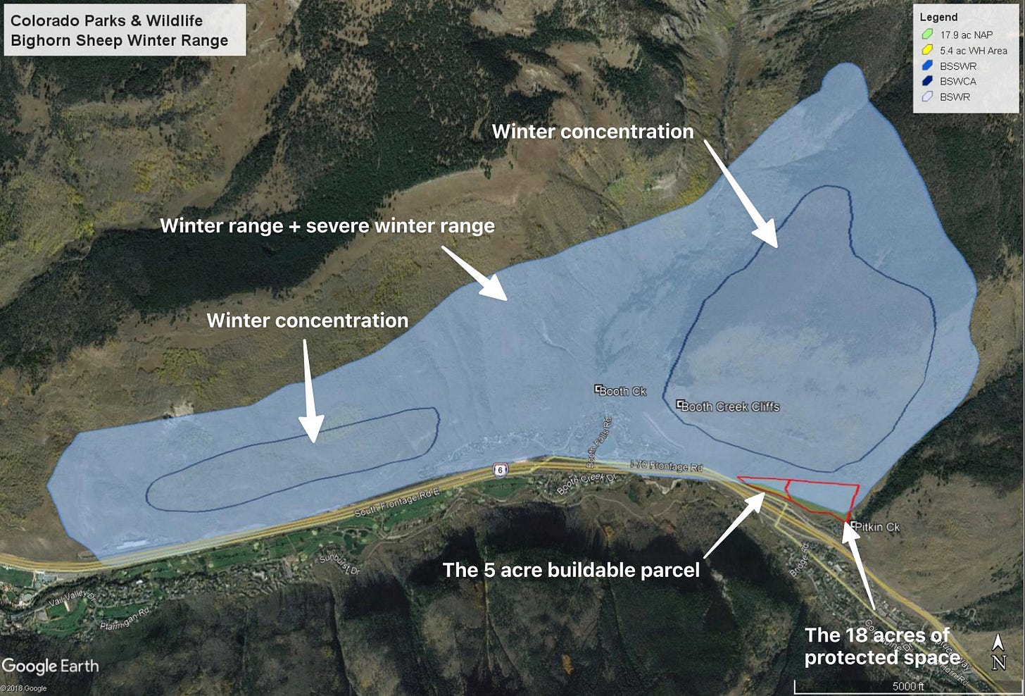 The property intersects with bighorn sheep habitat. While there are differing opinions about the impact of the property, the amount it overlaps with high-value winter range, and mitigation efforts, there is no question that building anything on this parcel would affect the bighorn sheep, both from construction and from eventual human habitation. There are very legitimate concerns about additional traffic on the frontage road, the access to grocery stores and amenities, and more.
