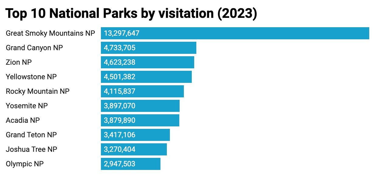 It's no secret that I love digging into the data, and just recently the National Parks Service (NPS) released their Visitor Use Statistics for 2023. I started looking into these stats a few years ago and it’s been a great exercise in keeping up with broader tourism and visitation trends. The data addresses all elements of the NPS, but I’ll mostly focus on National Parks here.