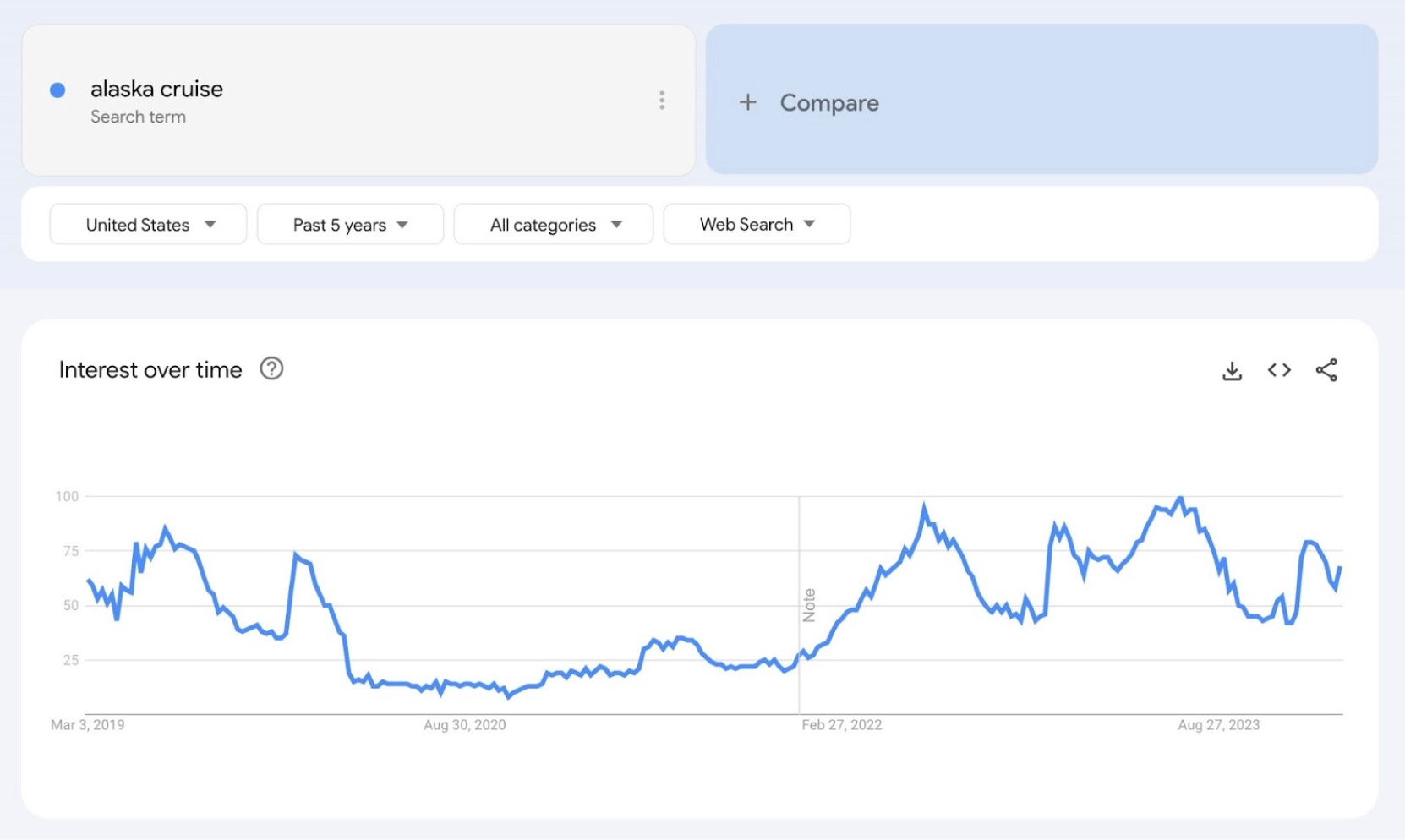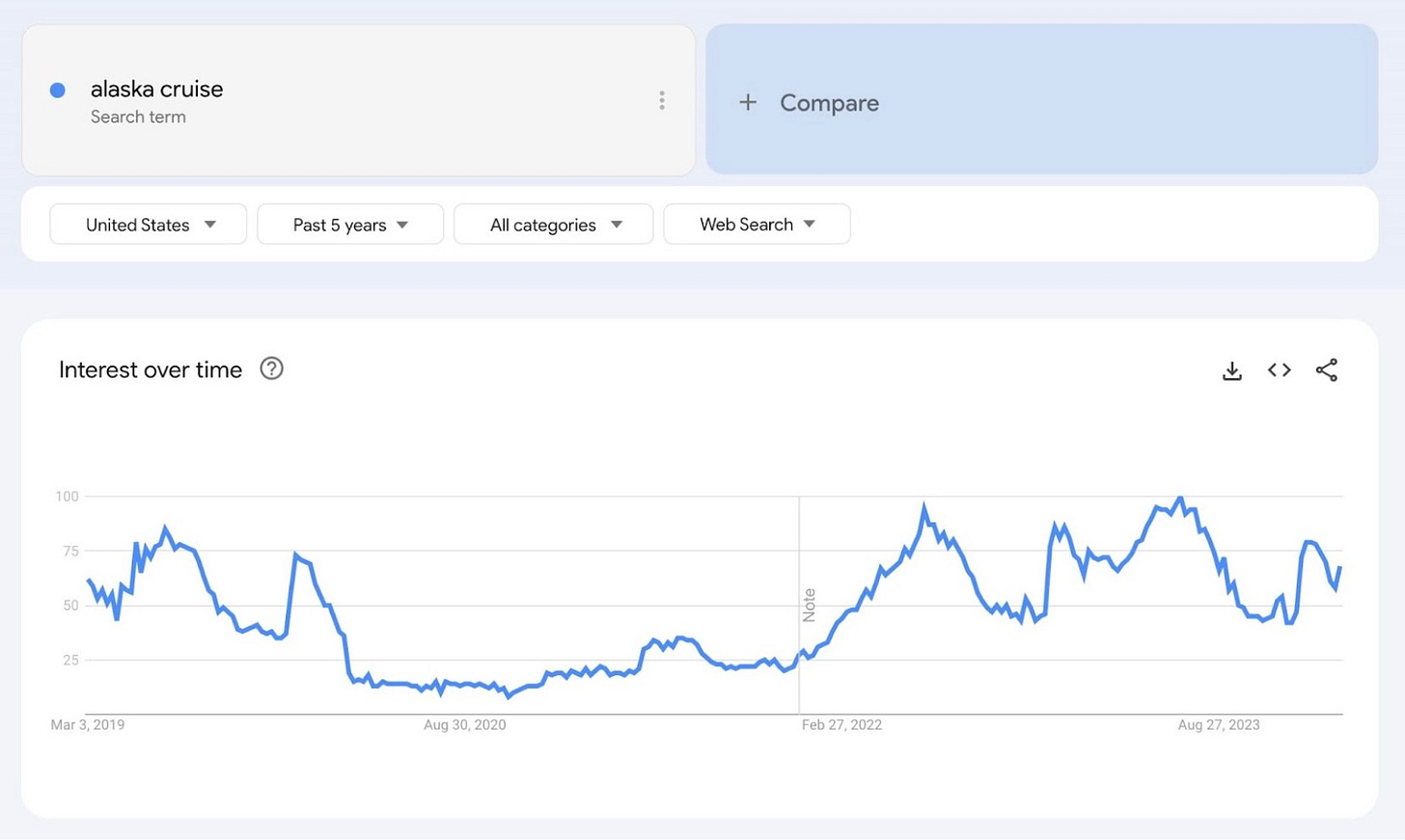 One of the most interesting growth points is Glacier Bay. This 3.3 million acre park located southeast of Juneau, Alaska is only accessible by plane or boat. It set a record of over 700k visitors in 2023, with a 29% increase in visitation over 2022. I had to wonder…why? Turns out, this is likely tied to a post-covid surge in cruise bookings, particularly to Alaska.