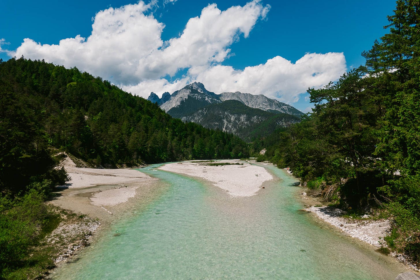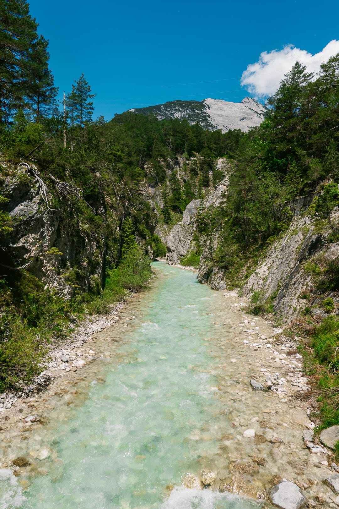 This was a cruiser day. I started by retracing my steps to Lafatscherjoch and then taking a right turn, following signage for the Hallangerhaus. A quick descent drops you into the valley, with views of the imposing granite face of Lafatscher Roßkopf. At Hallangerhaus, take a left turn and follow signs for Scharnitz. It's a wide gravel road from here all the way to town. There are plenty of opportunities for a dip in the river on the way (very cold, but great for the legs), and a stop at Kastenalm for a snack or cold beverage. This part of the trail is e-bike city -- it's a popular day trip from Scharnitz. Put your legs on auto pilot and enjoy the long downhill grade. The last bit into town is on pavement, and I considered my hike 'finished' when I reached the excellent Cafe Land for a well deserved beer! From Scharnitz it's an easy train back to Innsbruck.