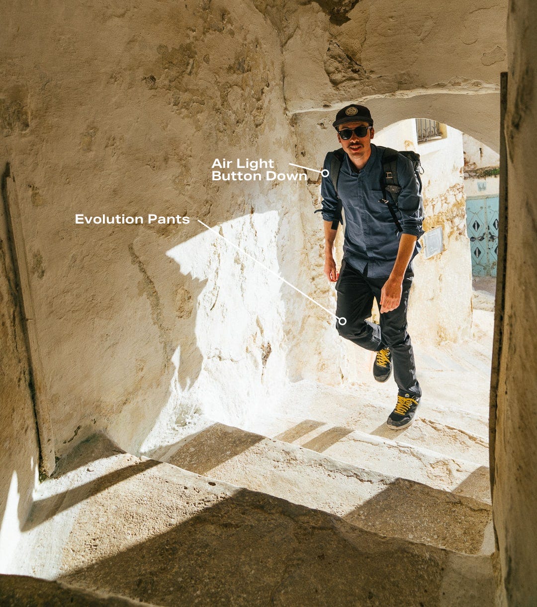 These lightweight pants are packable, durable, water resistant, and comfortable. It’s often hard to find pants that straddle the line of performance and style/comfort but the Evolutions do it well. I think I wore these for 10 out of 14 days and they looked no worse for the wear at the end of the trip. I also had a pair of the AT Slims, which are a little burlier and I only really wore those while we were hiking.