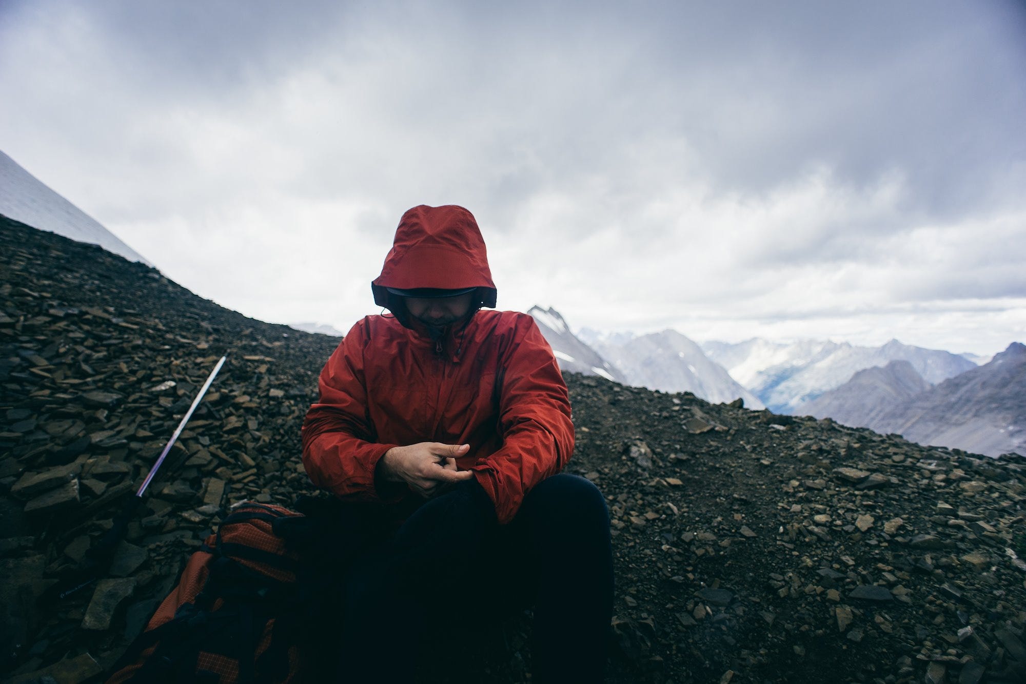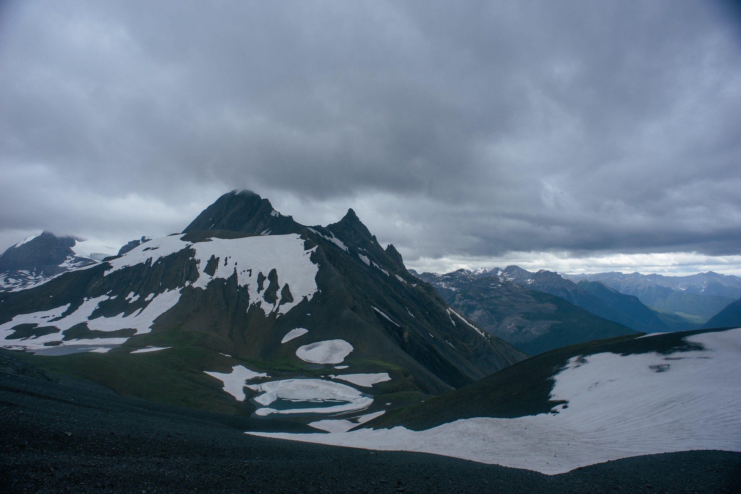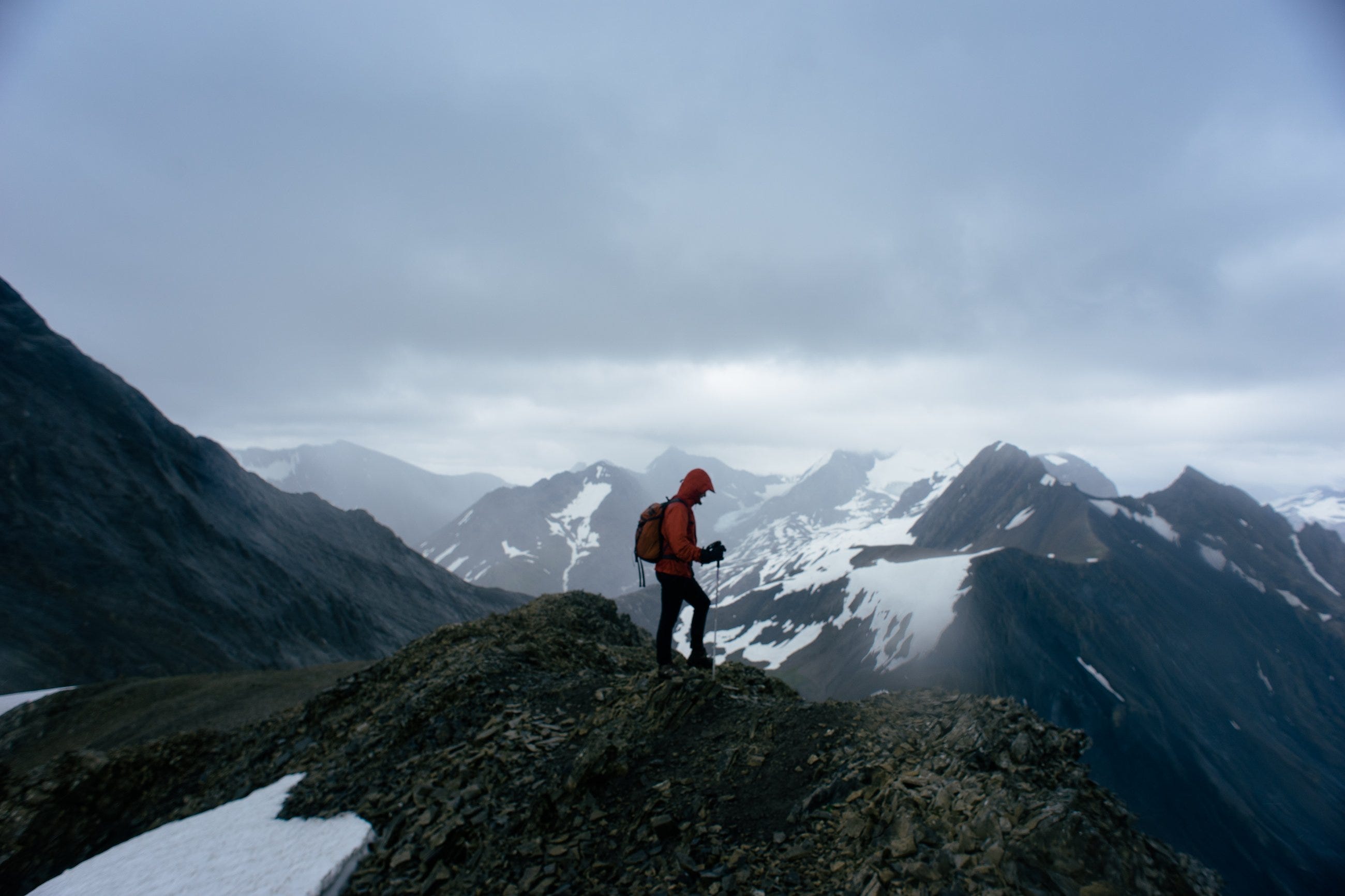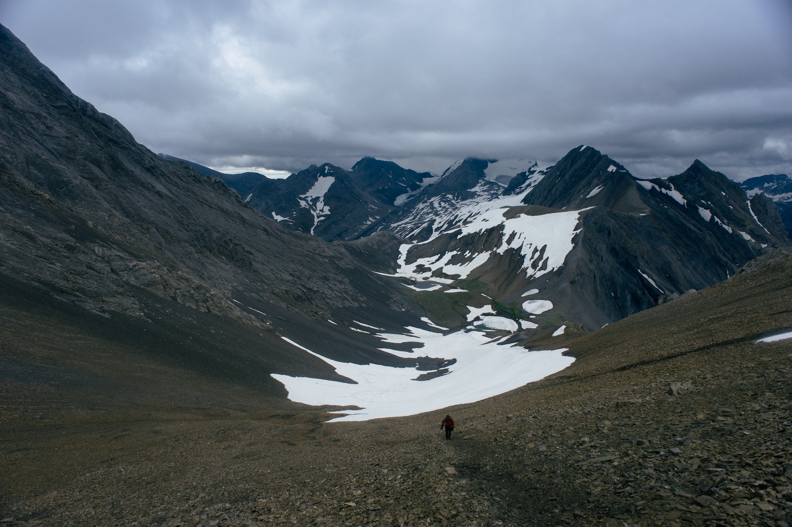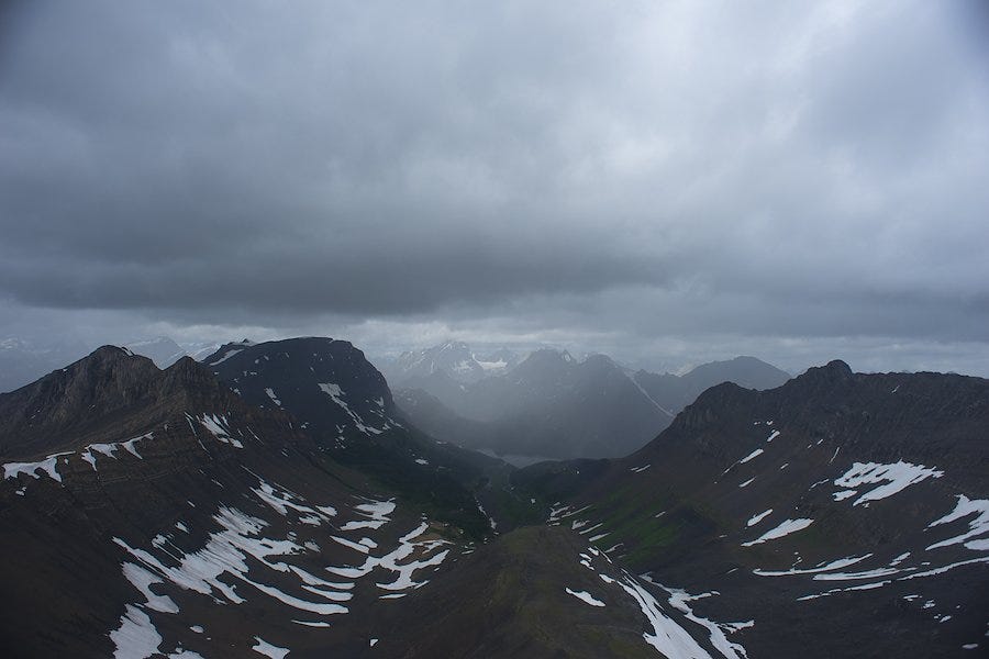 After reaching Aster Lake, the weather went south, fast. The rain, wind, and hail made for a tough approach to the pass. Pay attention to the route around here. The trail actually "disappeared" for a bit in the drainage above the lake, and we ended up adding some extra elevation gain by accidentally summiting an unnamed high point and then glissading back down to the actual trail.
