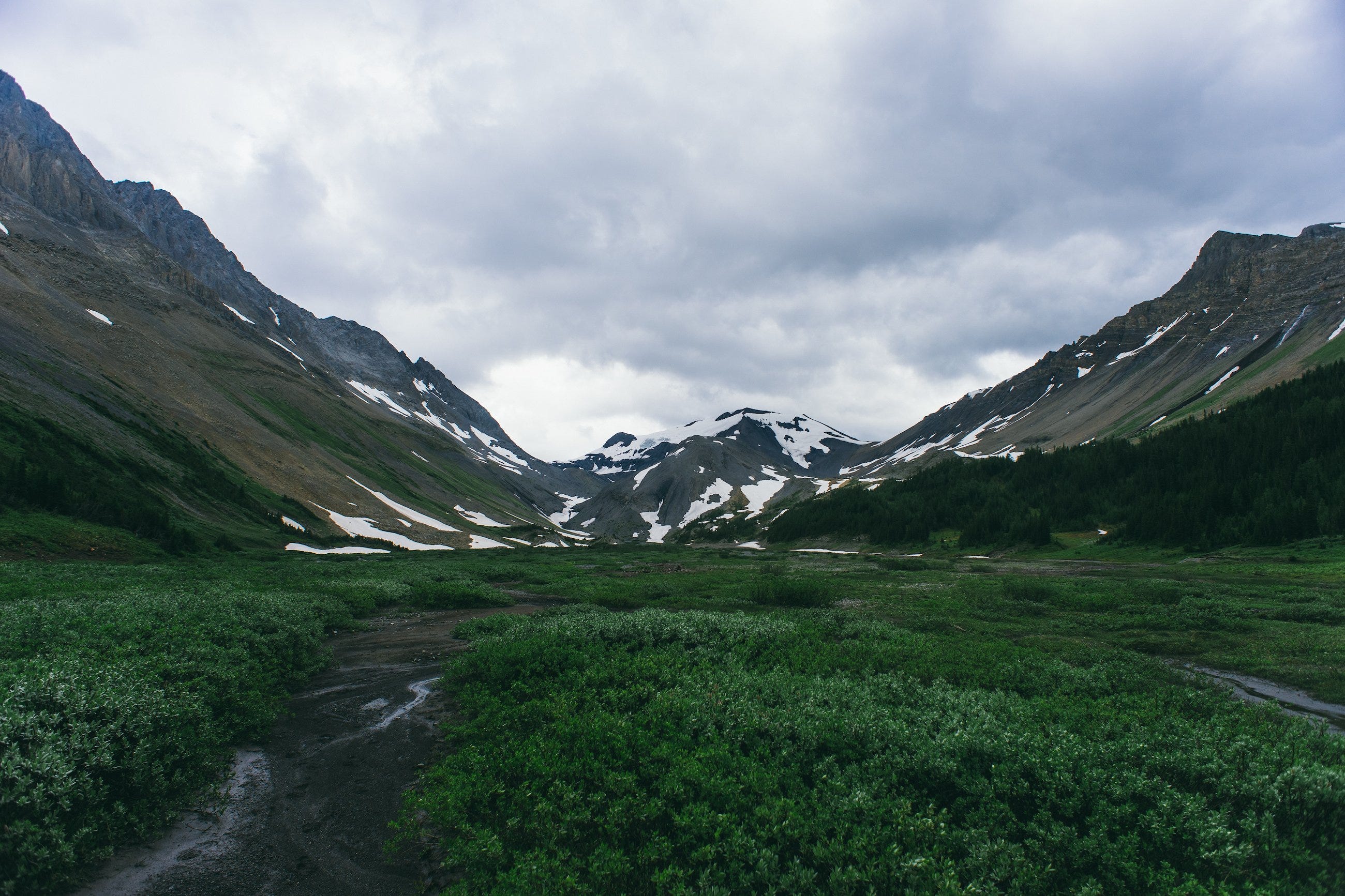 We slept near the trailhead and got started around 7am, skirting the edge of Upper Kananskis lake before cutting through the trees around Hidden Lake. It's worth noting, we started at the more southern parking and went around the south side of the lake. I think you might cut a little bit of distance by starting at the north lot, and going around the lake counter-clockwise to start – this means you'll spend less time traversing around the lake at the end of the day.