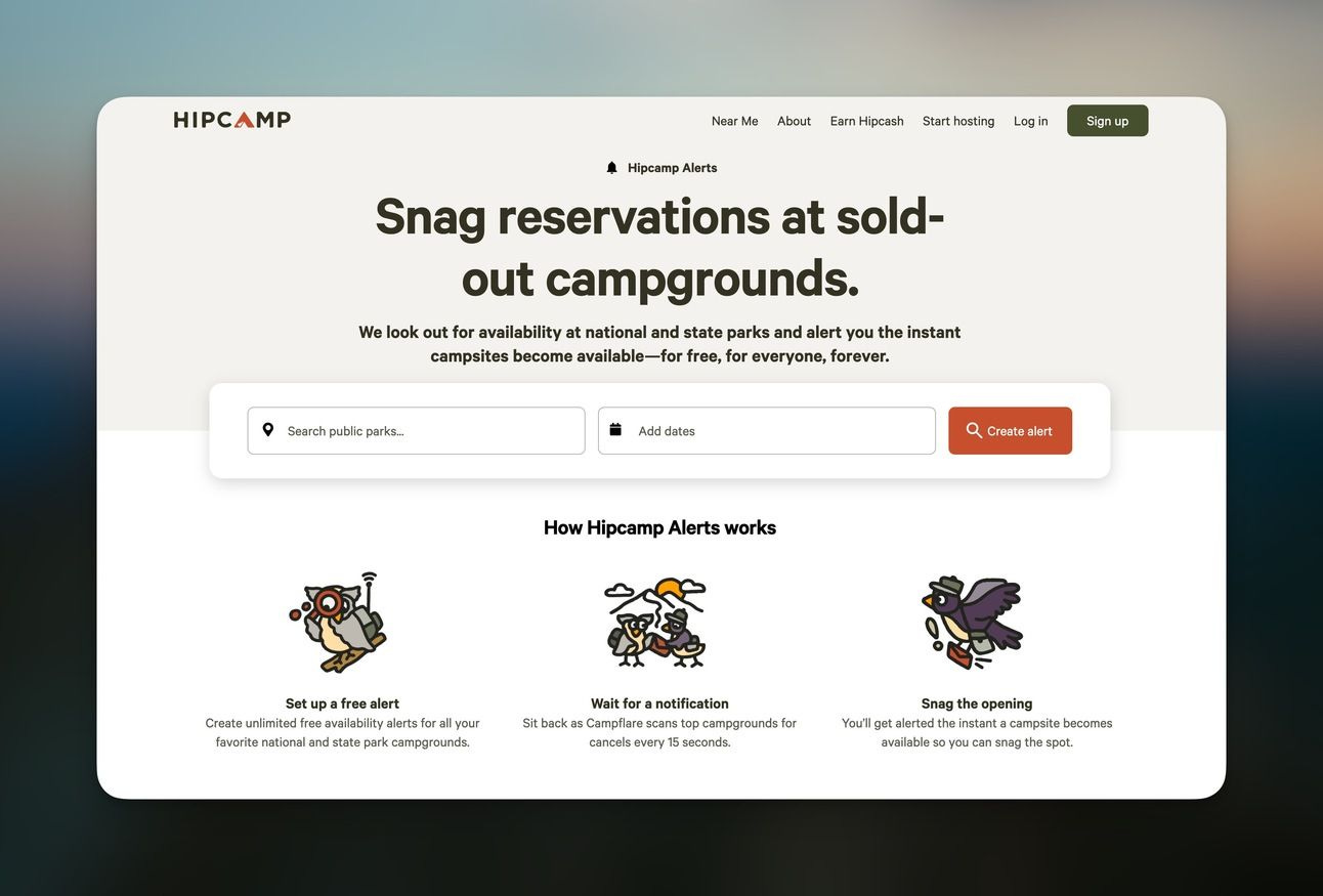 I’ve previously written about complicated world of campsite “bots” and campsite availability notifiers. Last week, Hipcamp launched Hipcamp Alerts, a service in partnership with Campflare, to provide campsite availability notifications for free.