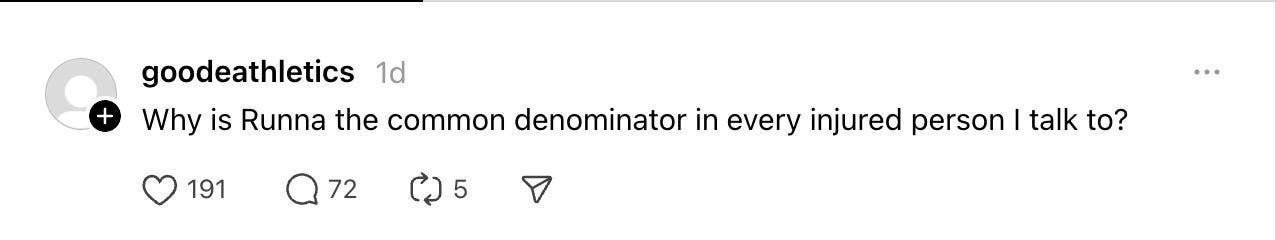 Runna feels like a convenient target because it sits at the intersection of several modern anxieties, but helping large numbers of new, inexperienced people train for demanding distances without getting hurt is genuinely difficult. No app, coach, or philosophy has solved that yet.