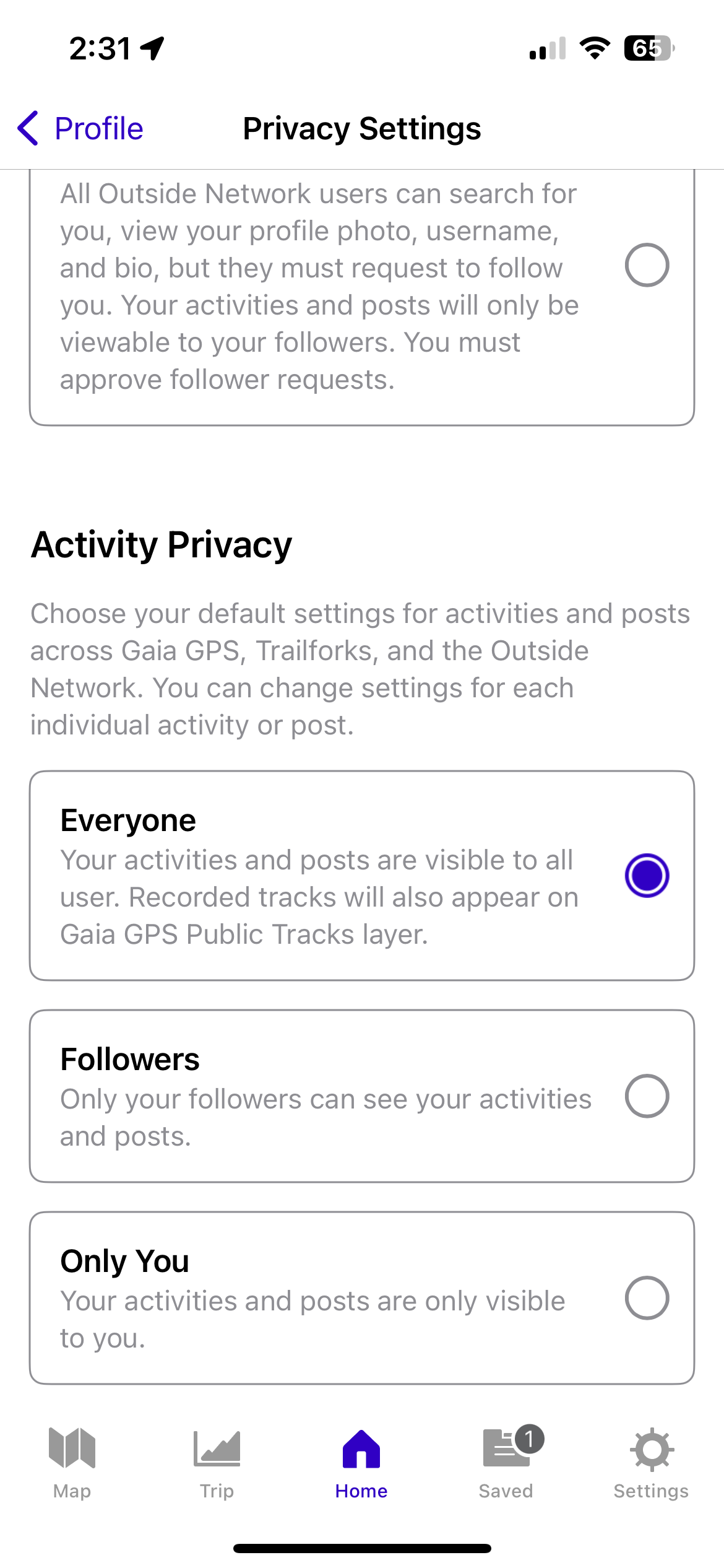 There are also privacy implications. I don’t remember my default GaiaGPS privacy settings, and I typically don’t record there anymore, but the “Outside Network” settings had both my profile as public and my activity privacy automatically set to “Everyone - Your activities and posts are visible to all user. Recorded tracks will also appear on Gaia GPS Public Tracks layer” (typos not mine). One user I spoke to had previously connected Strava to Trailforks; they said that the Outside feed had started publishing their private Strava activities to a public feed via Trailforks. A GaiaGPS product lead had the hapless job of defending changes to an aggravated Reddit community with significant concerns about both privacy and a lack of focus. And tech-wise, while this was a project years in the making, the final implementation still feels rough. The feed isn’t even integrated directly into the GaiaGPS app, it’s a bunch of webviews, which is why there’s a cookie banner and a bunch of strange navigation patterns.