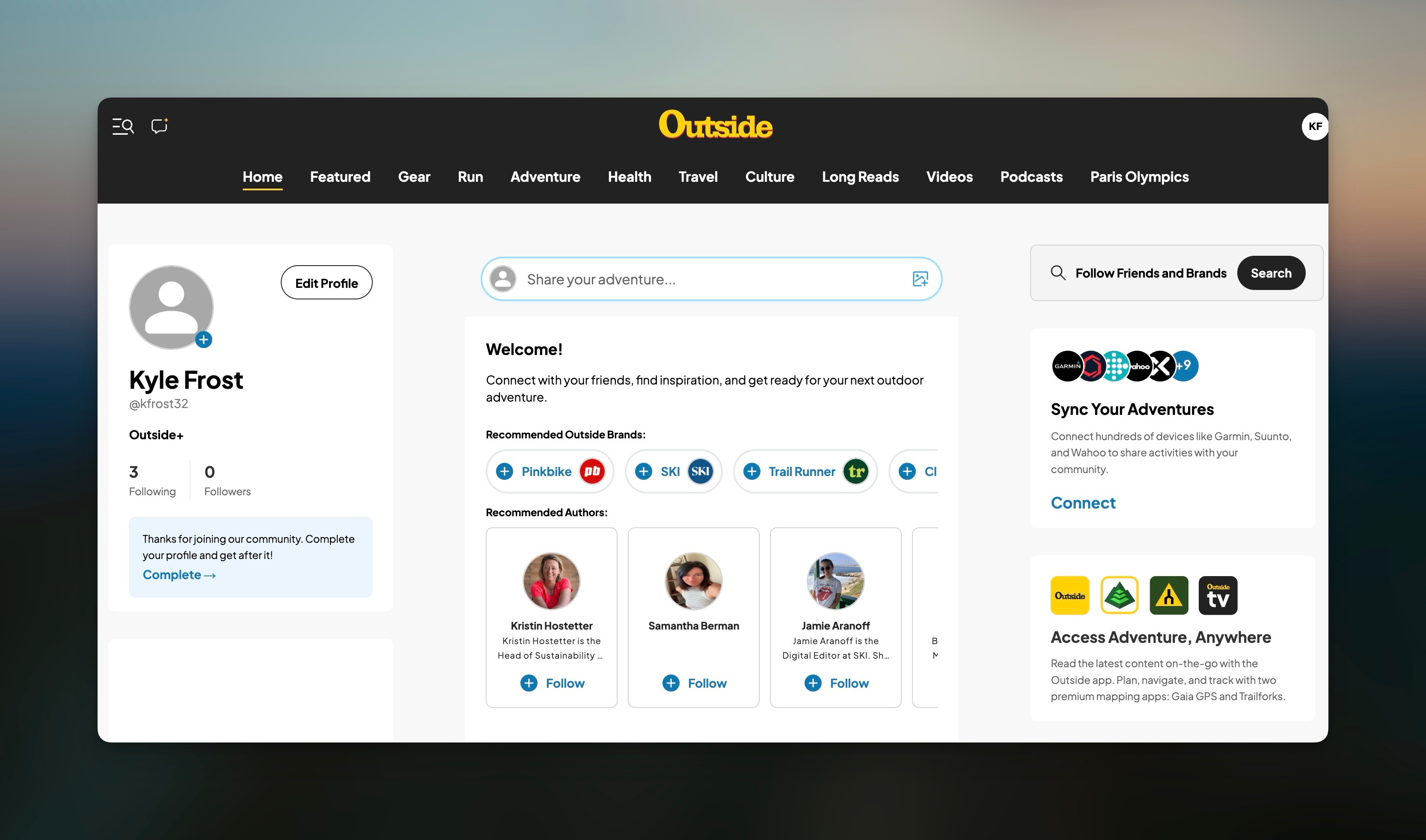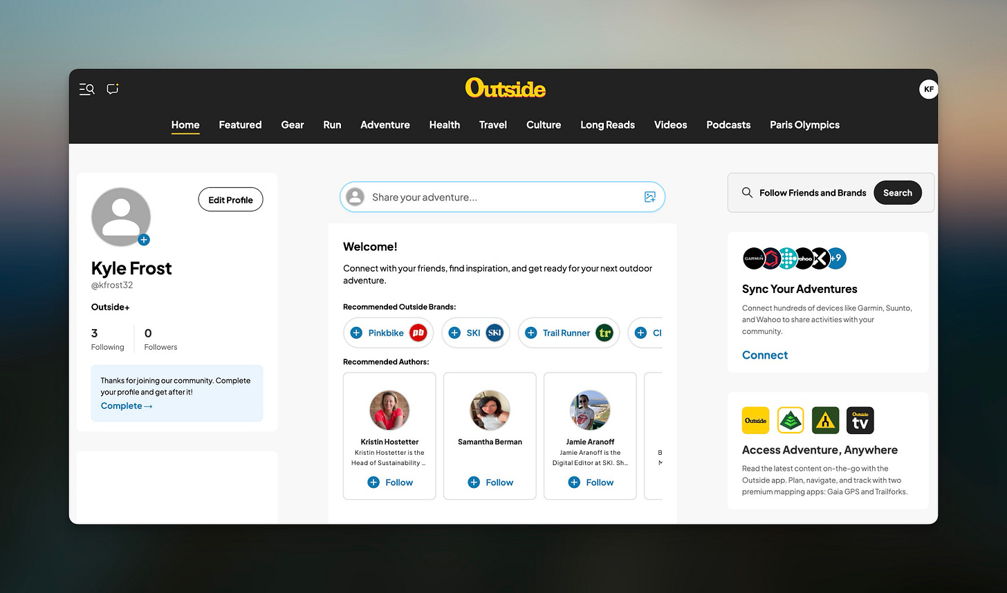 The new social features feel purpose built to increase the surface area of Outside’s advertising and promoted posts and improve the connectivity across the various apps and properties in their ecosystem. It's a broader push for a unified Outside profile, connecting all your engagement across different websites and apps. The goal is to get you to follow Outside publications, authors, and your friends in order to populate a feed of content. Think Twitter/Facebook, but focused on Outside properties.