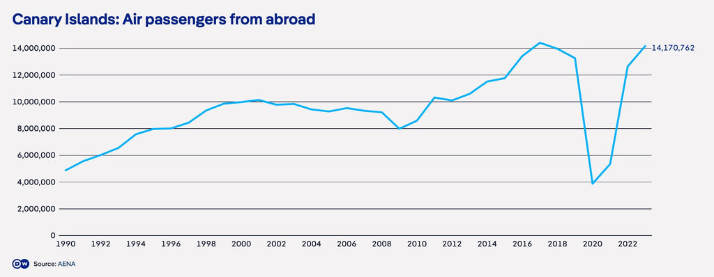 In the Canary Islands, an archipelago off the coast of Spain, locals are protesting the number of tourists. “A total of 13.9 million tourists visited the Canary Islands in 2023, according to local chamber of commerce figures, 13% more than the year before. That is about six times more than the islands' population of 2.2 million.” (BBC) Part of the concern here is that the tourism dollars aren’t benefiting locals – policies put in place years ago to attract investment favor outside investors and big resorts. The “model is "incredibly generous" to investors, who only pay 4% tax and can send the profits earned in the Canaries back to the firm's home country” (Sky). Similar protests have been held in popular European holiday destinations like Mallorca and Ibiza. The disparity this creates is significant – one out of three locals are at risk of falling into poverty and nearly a third of all housing on the islands are foreign-owned. Similar protests have been held in popular European holiday destinations like Mallorca and Ibiza.