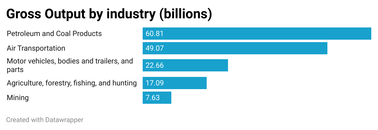 What does this mean? Well, it is 100% accurate to say that the outdoor recreation economy is *big*. However, it's probably not the most accurate to compare that output directly with other industries, since a portion of the outdoor recreation GDP is actually made up of the GDP from those other industries. For example, the outdoor recreation GDP contains $13B from farming and $763M from mining that is somehow related to outdoor rec.