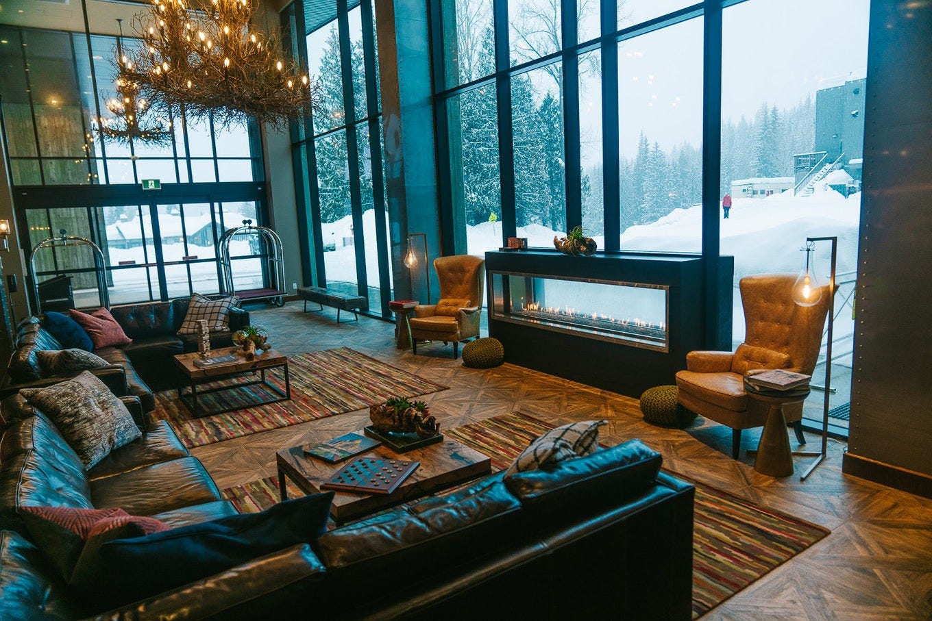 The Josie Hotel is a relatively new addition to the RED base area. This hotel has a hip, modern vibe — hoping to bring more travelers to Rossland, and offer more upscale accommodations than the humble Rossland has been typically known for. After a stay here, I’d have to say it delivers. Between the mountain modern decor, the slope side location (you’re literally 30 seconds from the lift) and the mountain views from most rooms, you’d be hard pressed to want anything more.