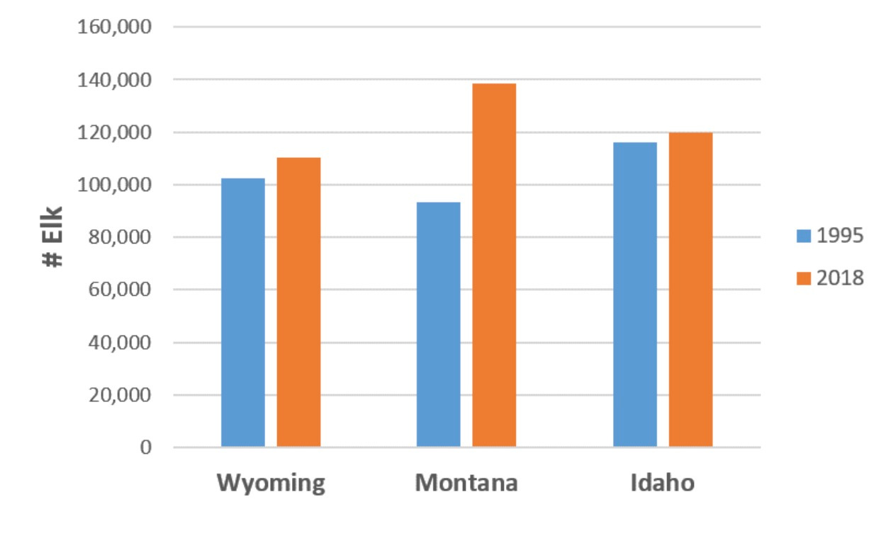 Based on Colorado State University's Center of Human-Carnivore Coexistence data, there was no overall decline in post-hunt elk populations in states where wolves were reintroduced between 1995 and 2018.
