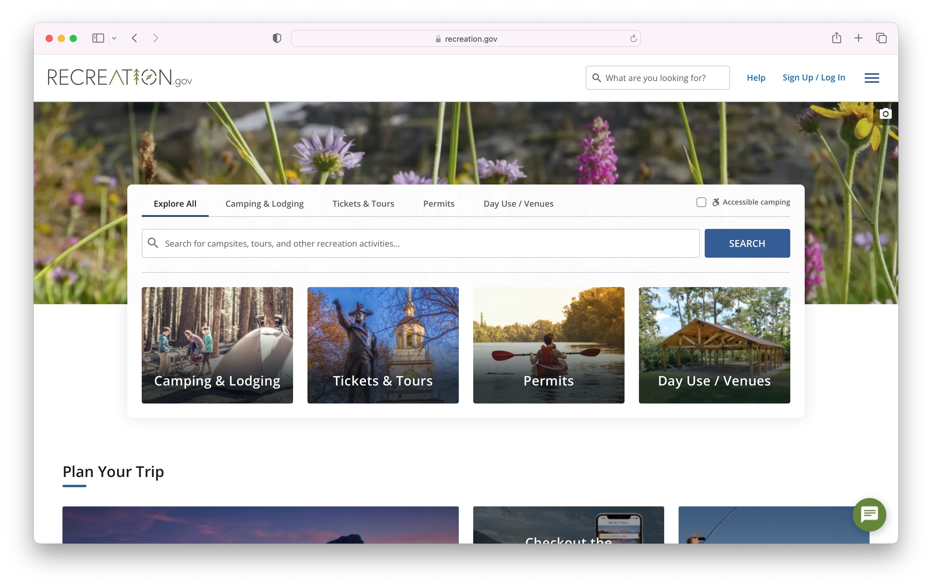 Rec.gov is an online reservation system for public lands that started primarily as a way to share information across agencies, but it has since grown and expanded to include search, campsite booking, permits, and lotteries for public lands across the country. It is an interagency platform primarily administered by the US Forest Service (USFS) with 13 different agencies involved. Previously operated by Reserve America, Booz Allen Hamilton (a Big 4 consulting firm) took over the 10 year contract in 2016 after a lengthy bid and review process.